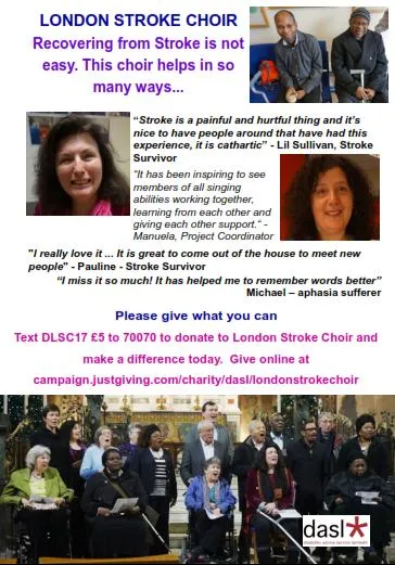 The London Stroke Choir is open to stroke survivors from anywhere in London, not just people from Lambeth and Southwark.